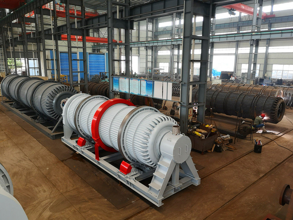 高溫?fù)Q熱器,要在一定時(shí)間內(nèi)把大量的渣冷卻到一定溫度,必須有足夠的換熱面積。換熱面積與換熱量正相關(guān)。通渣截面積越大每小時(shí)能夠排出的渣也就越多。通渣截面 積與通渣能力正相關(guān)。在筒體直徑和長(zhǎng)度一定的情況下,能夠盡可能擴(kuò)大通渣截面積對(duì)提高排渣能力和換熱面積都是有利的。渣從紅渣進(jìn)去到排出100℃以內(nèi)的冷渣,一定要有足夠的停留時(shí)間,渣的停留時(shí)間要足夠長(zhǎng),轉(zhuǎn)速要足夠低;同時(shí)轉(zhuǎn)速低對(duì)控制換熱面和機(jī)械磨損都是有利的。轉(zhuǎn)速高則渣停留時(shí)間短,對(duì)冷卻是不利的。
